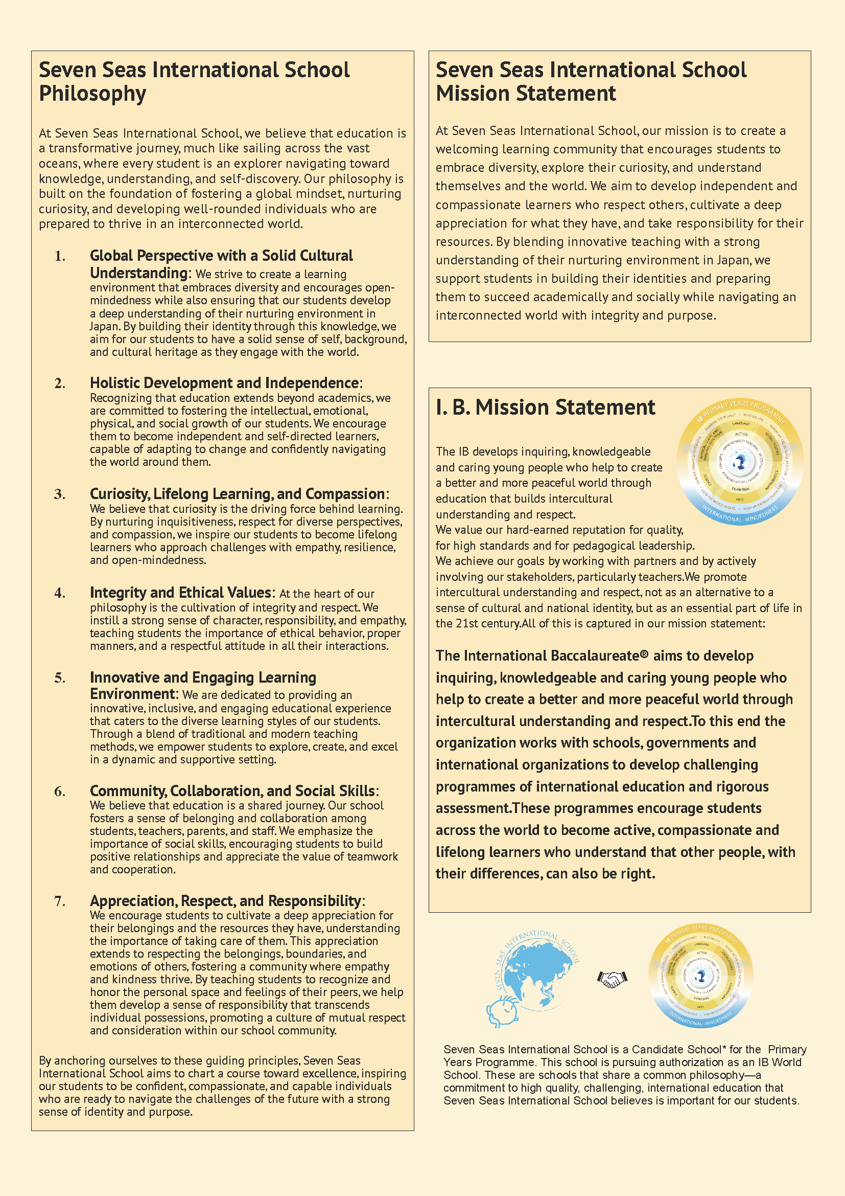 お問い合わせ必要事項をご入力の上、確認ボタンを押してください。 お電話でも受け付けております。受付時間:平日 9:00 ~ 18:00東京本校 : 03-3431-7141 Step.01 項目の入力 Step.02 入力内容の確認 Step.03 送信完了 Step.01 項目の入力 Step.02 入力内容の確認 Step.03 送信完了 入力内容をご確認の上、フォームを送信してください。 Step.01 項目の入力 Step.02 入力内容の確認 Step.03 送信完了 お名前 必須 全角でご入力ください フリガナ 必須 全角カタカナでご入力ください メールアドレス 必須 半角英数字でご入力ください ご連絡先 必須 携帯電話も可半角英数字でご入力ください お問い合わせ内容 必須 資料ご希望の場合の送付先 任意 資料をご希望の場合は、送付先のご住所をご記入ください 郵便番号 住所を自動入力 都道府県 選択してください北海道青森県岩手県宮城県秋田県山形県福島県茨城県栃木県群馬県埼玉県千葉県東京都神奈川県新潟県富山県石川県福井県山梨県長野県岐阜県静岡県愛知県三重県滋賀県京都府大阪府兵庫県奈良県和歌山県鳥取県島根県岡山県広島県山口県徳島県香川県愛媛県高知県福岡県佐賀県長崎県熊本県大分県宮崎県鹿児島県沖縄県 市区町村 番地以降 個人情報保護方針1.個人情報の管理当校は、生徒及び保護者の個人情報を正確かつ最新の状態に保ち、個人情報への不正アクセス・紛失・破損・改ざん・漏洩などを防止するため、セキュリティシステムの維持・管理体制の整備・職員教育の徹底等の必要な措置を講じ、安全対策を実施し個人情報の厳重な管理を行います。2.個人情報の管理、及び、第三者開示保護者からお預かりした個人情報は、当校からのご連絡や業務のご案内、ご質問に対する回答として、電子メールや資料のご送付に利用いたします。3.個人情報の第三者への開示・提供の禁止当校は、保護者よりお預かりした個人情報を適切に管理し、次のいずれかに該当する場合を除き、個人情報を第三者に開示いたしません。• 保護者の同意がある場合• 保護者に向けてのサービスまたは当校が必要であると認めたものに対し、当校が業務を委託する業者などに対して開示する場合• 法令に基づき開示することが必要である場合4.個人情報の安全対策当校は、個人情報の正確性及び安全性確保のために、セキュリティに万全の対策を講じています。5.ご本人の照会保護者がご本人及びそのお子さんの個人情報の照会・修正などをご希望される場合には、ご本人であることを確認の上、対応させていただきます。6.法令、規範の遵守と見直し当校は、保有する個人情報に関して適用される日本の法令、その他規範を遵守するとともに、本ポリシーを適宜見直すなど、内容の改善に努めます。7.お問い合わせ当校の個人情報の取扱に関するお問い合せは下記までご連絡ください。SEVEN SEAS INTERNATIONAL SCHOOL〒105-0013 東京都港区浜松町1-17-6TEL:0120-88-7141Mail: info@7sis.jp個人情報の取り扱いについて同意する。